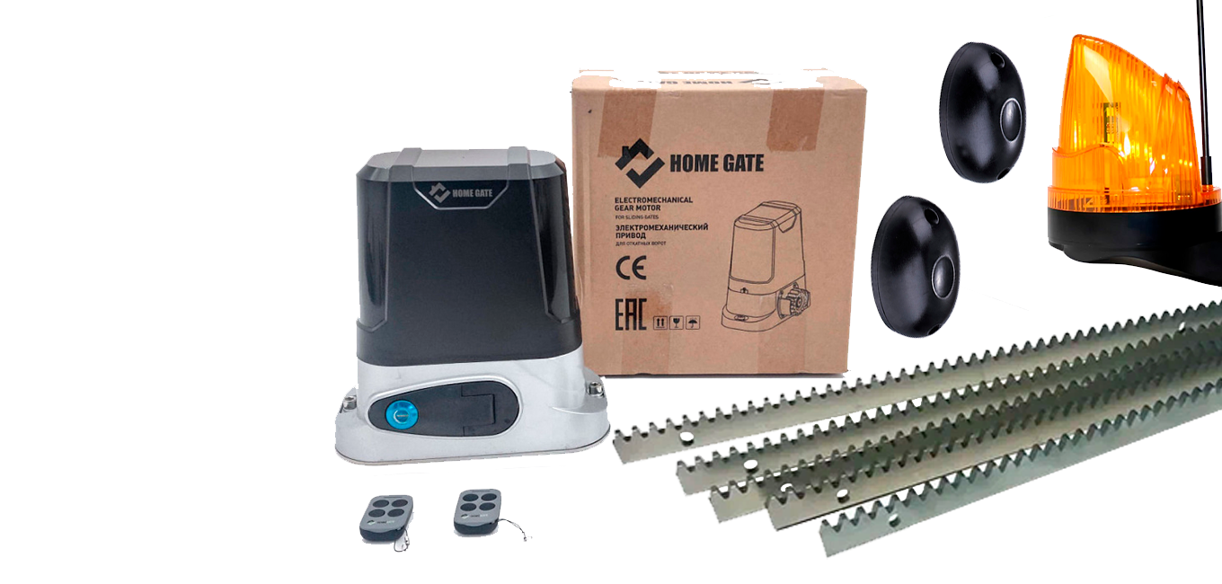 Комплект для откатных ворот HOME GATE LTM 800 light (Wi-Fi) + рейка 5 шт + фотоэлементы + лампа